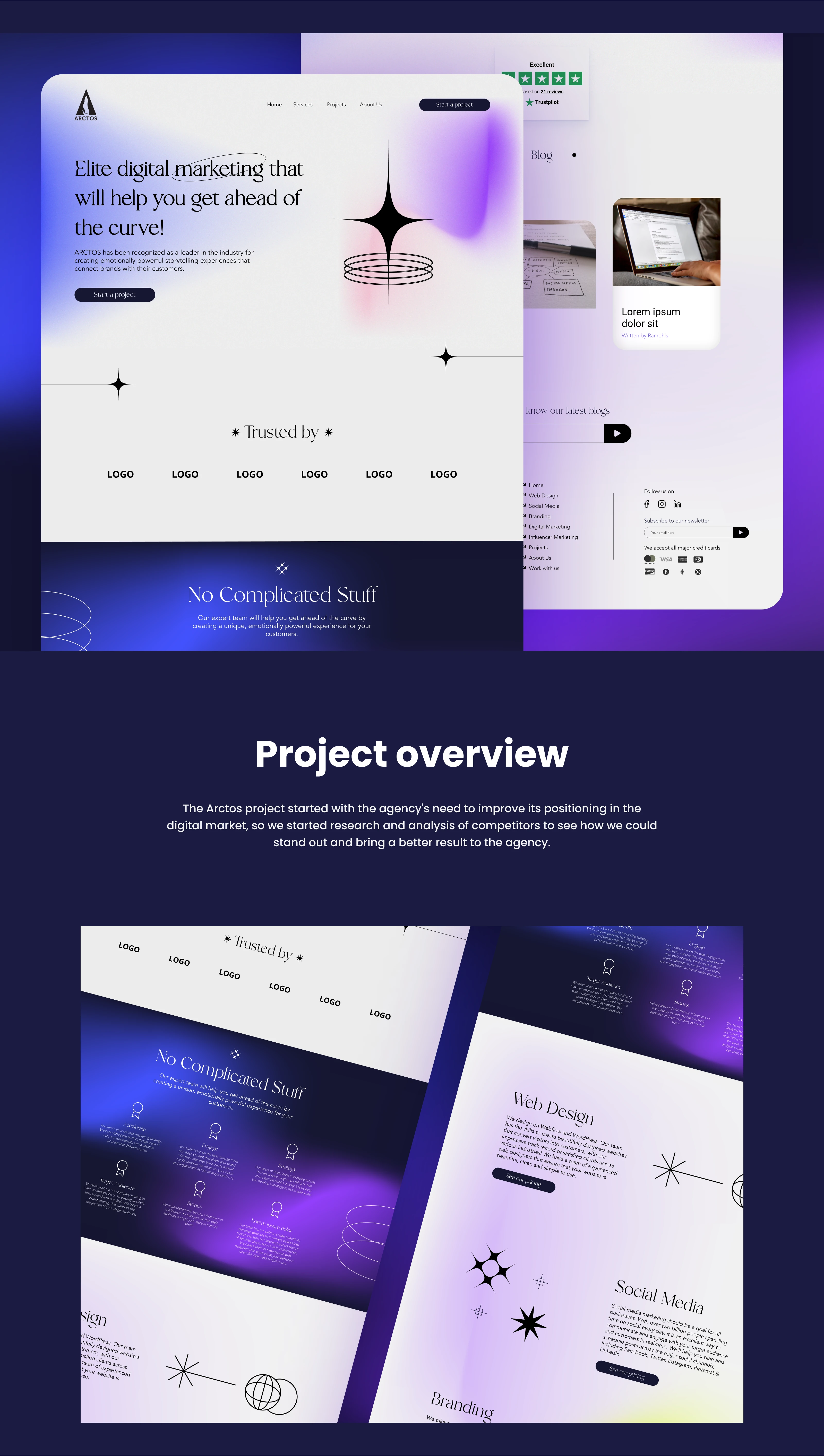 The Arctos project started with the agency's need to improve its positioning in the digital market, so we started research and analysis of competitors to see how we could stand out and bring a better result to the agency.
